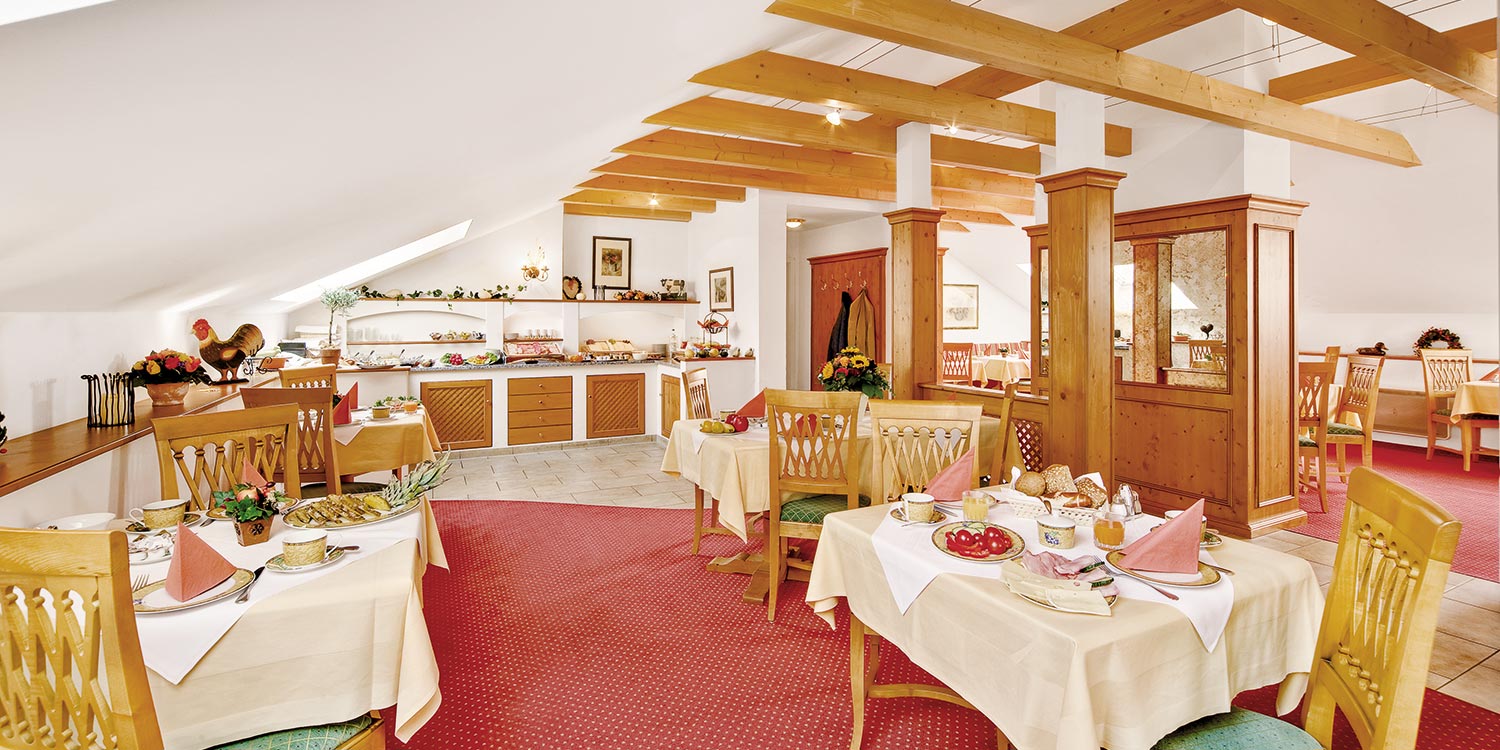 Morgenstund hat Gold im Mund und wird mit unserem reichhaltigen Frühstücksbuffet vollendet. Von allem nur das Beste, natürliche und frische Zutaten, herzhaft, bekömmlich und leicht. Beginnen Sie Ihren wohlverdienten Urlaubstag ohne Stress und Hektik. Genießen Sie den Service unseres Hauses der keine Wünsche offen lässt.